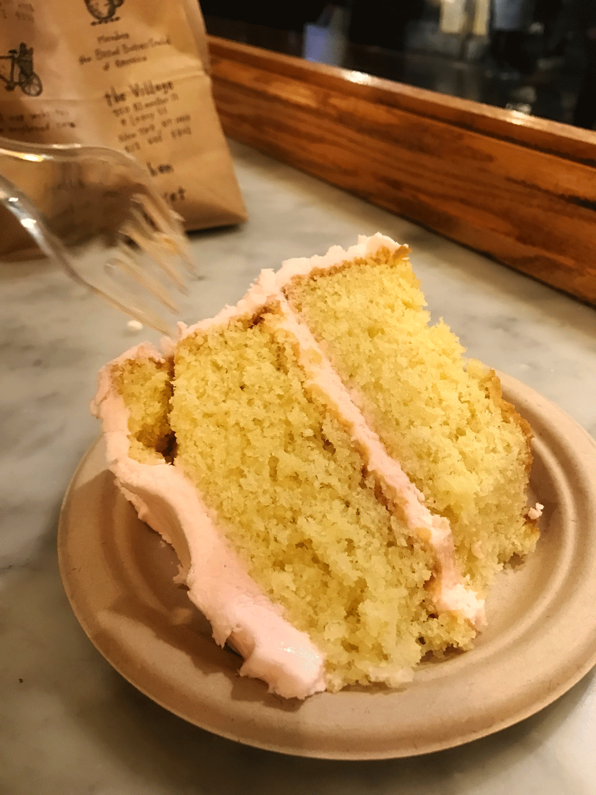 After the Empire State Building we headed over to Chelsea Market. That place was awesome! It was so nice to go indoors to get warm. haha! There are shops everywhere and lots and lots of food! We stopped in Amy’s Bread (one of the places Lin heard was amazing) and got a slice of her Yellow Cake with Pink Frosting. It was the bomb dot com. So good!
