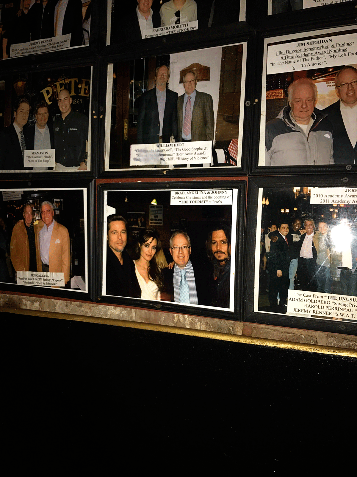 I have never been in a restaurant like this. It was so cool! It was built in 1864 and is still really popular in NYC. It was packed with people! There are pictures of celebrities all over the walls. I snapped a pic of this one below of Brad, Angelina and Johnny Depp with Pete. The whole vibe of the place was too cool and the food was INCREDIBLE!