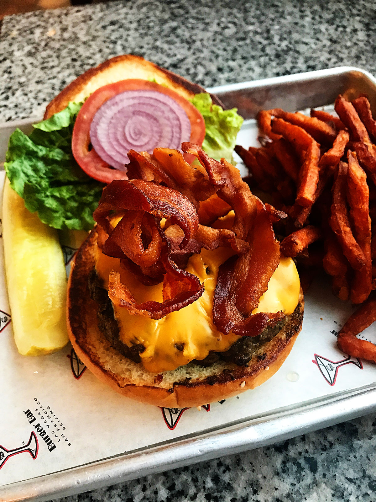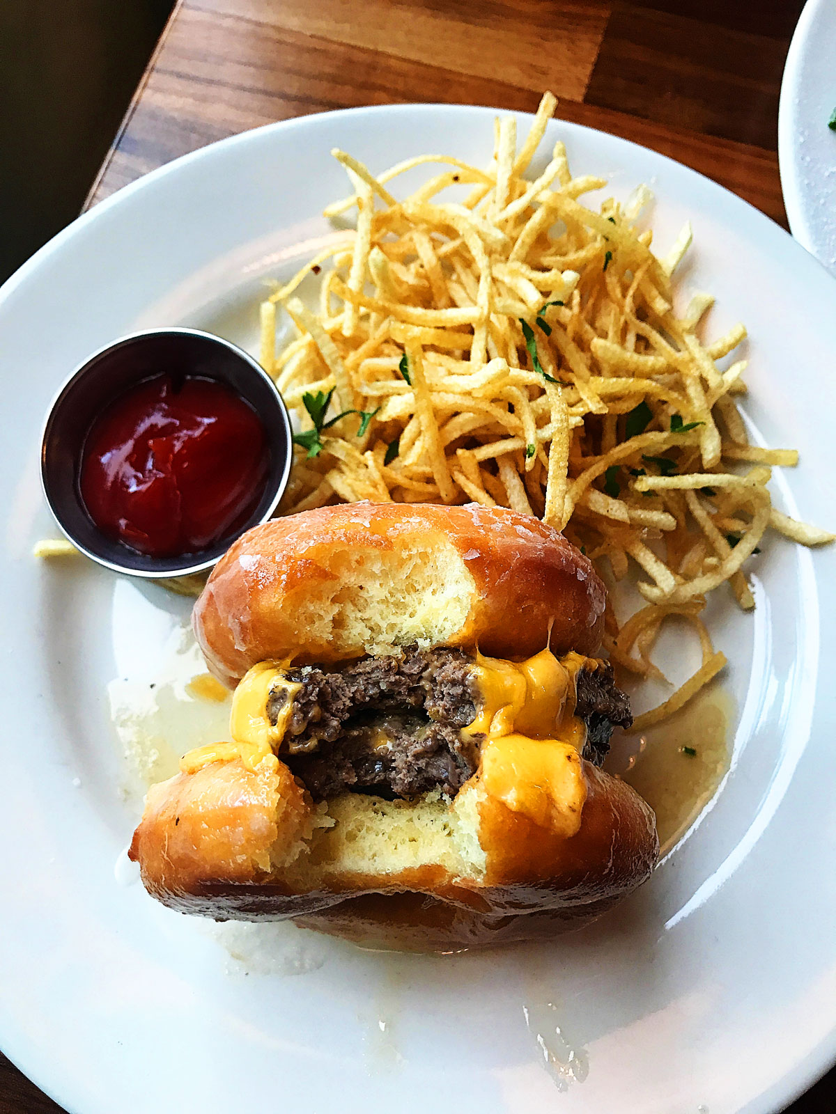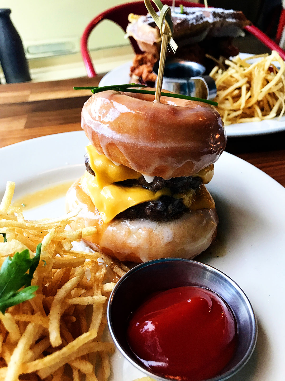 I ordered the Glazed Donut Cheeseburger. Oh, yes I did. And it was AMAZING!! (don’t knock it until you try it!)