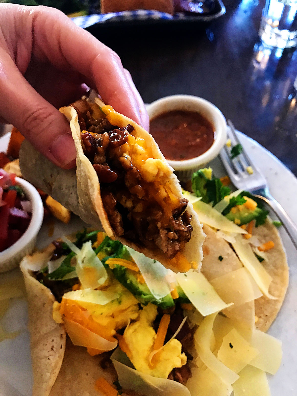 I ordered breakfast tacos and they were the bomb dot com. Yum!
