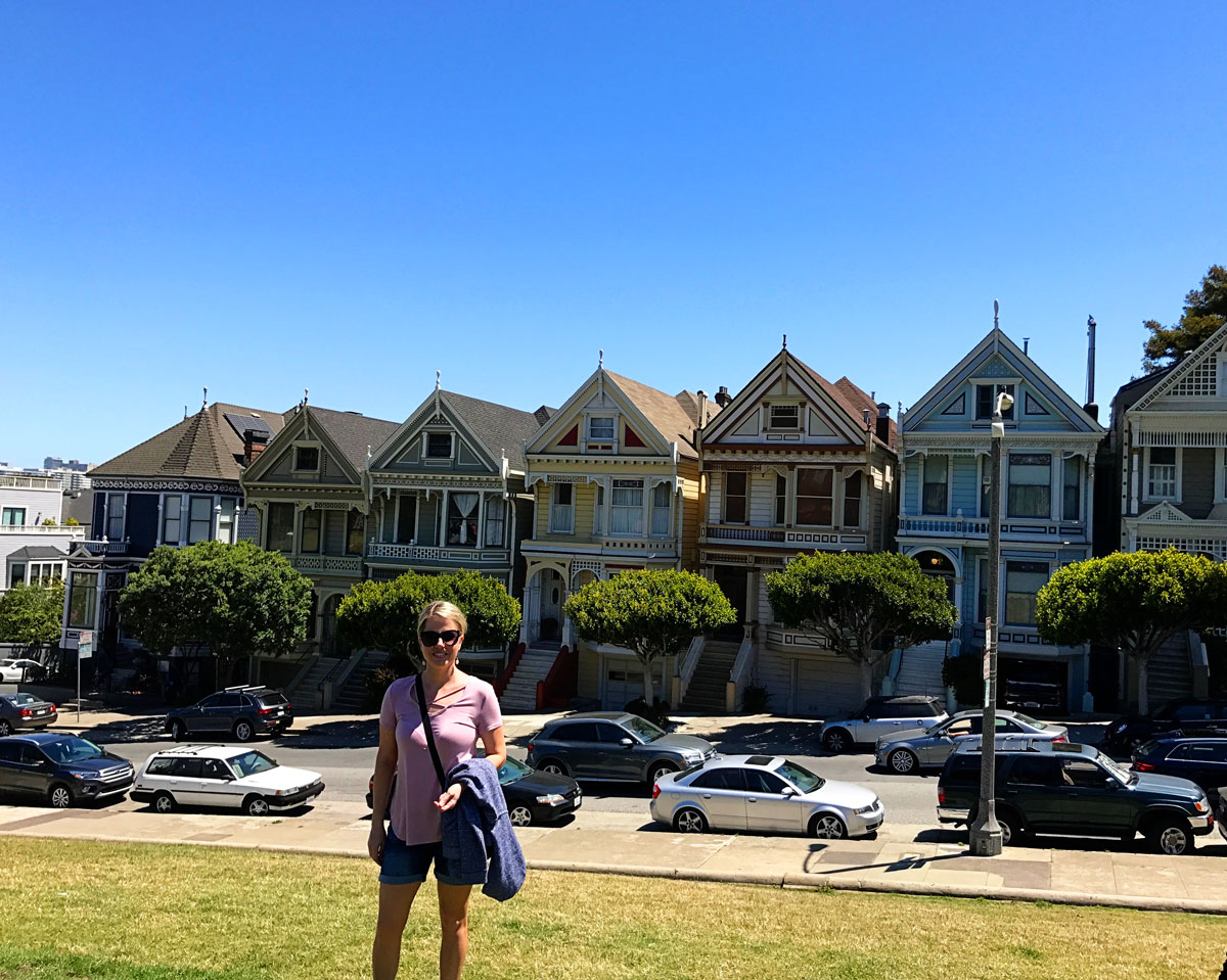 Then we walked over to the Painted Ladies street. These are the homes that are in the opening credits to Full House. The park across the street (where I’m standing) was super crowded. Tons of people were there taking pictures. 🙂