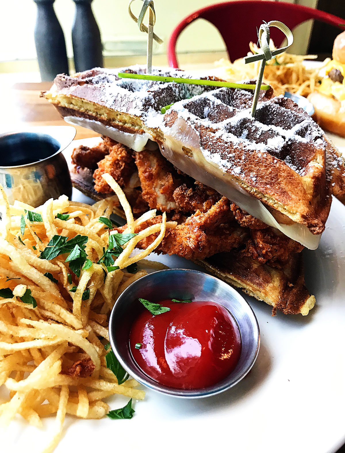 Kale ordered the Monte Cristo waffle sandwich. It was delish!