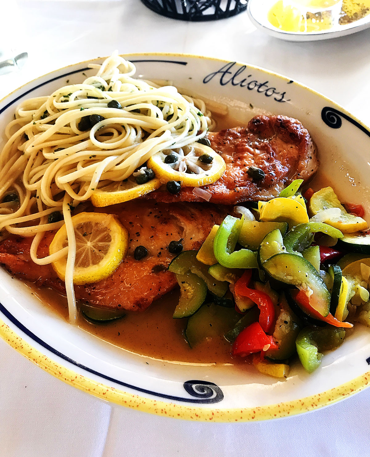 I ordered the Chicken Piccata and it was delicious! Kale ordered a seafood platter and loved it too. Great restaurant and the view wasn’t too bad either. 😉